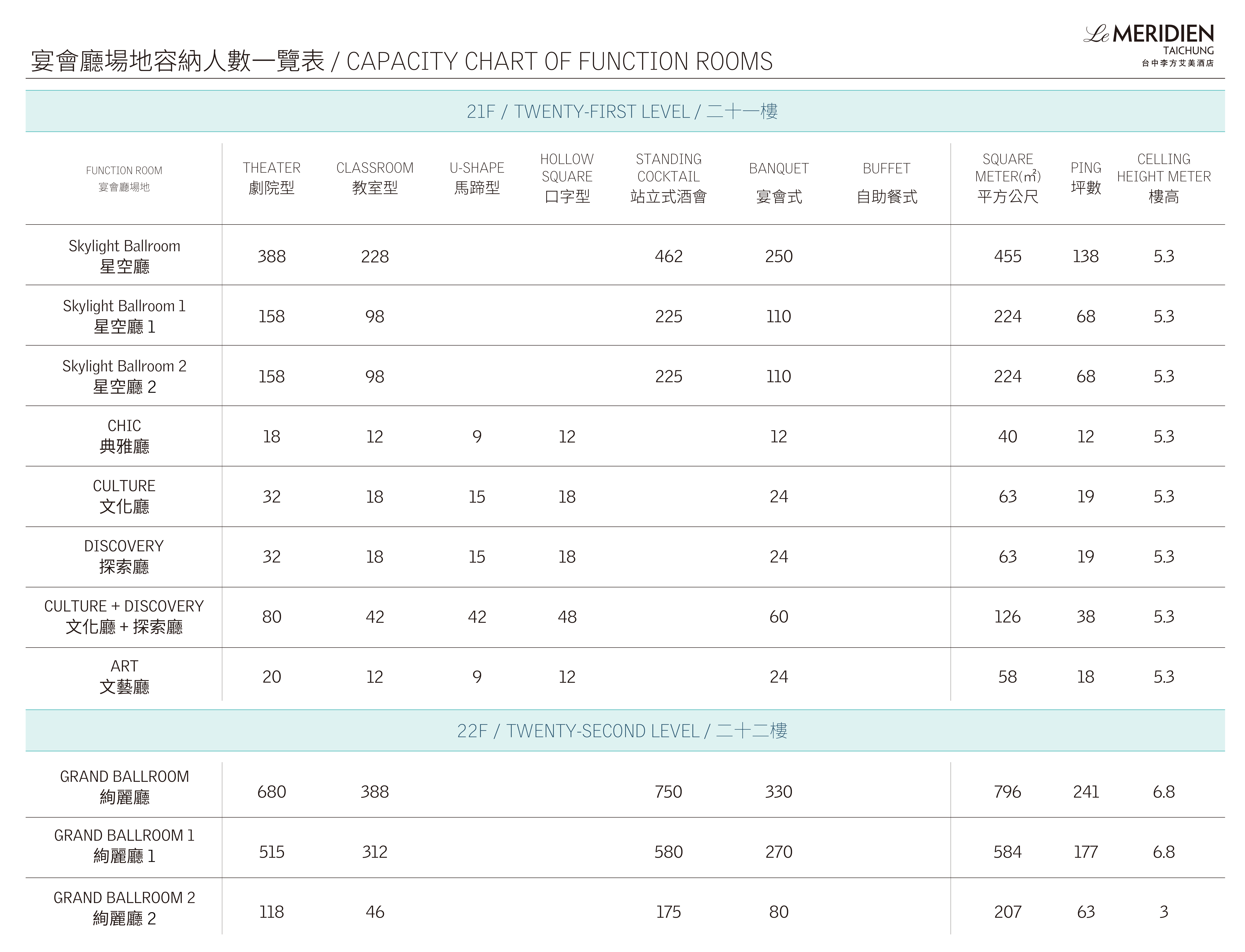 查看21F宴會廳平面圖