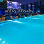 坐擁台中市天際線美景與泳池日落景致